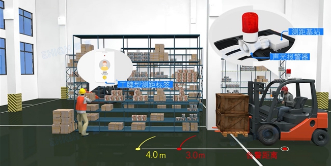 對活躍在工廠、園區、工地等的工業車輛而言,由于人機交互作業環境的有限性和復雜性,安全盲區無形中被擴大。因此,健全的工業車輛安全監控管理系統能更好的解決人機安全問題,其中四相科技叉車防撞定位系統基于UWB高精度定位技術融合防撞系統,可自主設定人—車、車—車安全距離,通過實現感應測距報警,有效防止碰撞發生,對保障工業生產穩定運行至關重要。