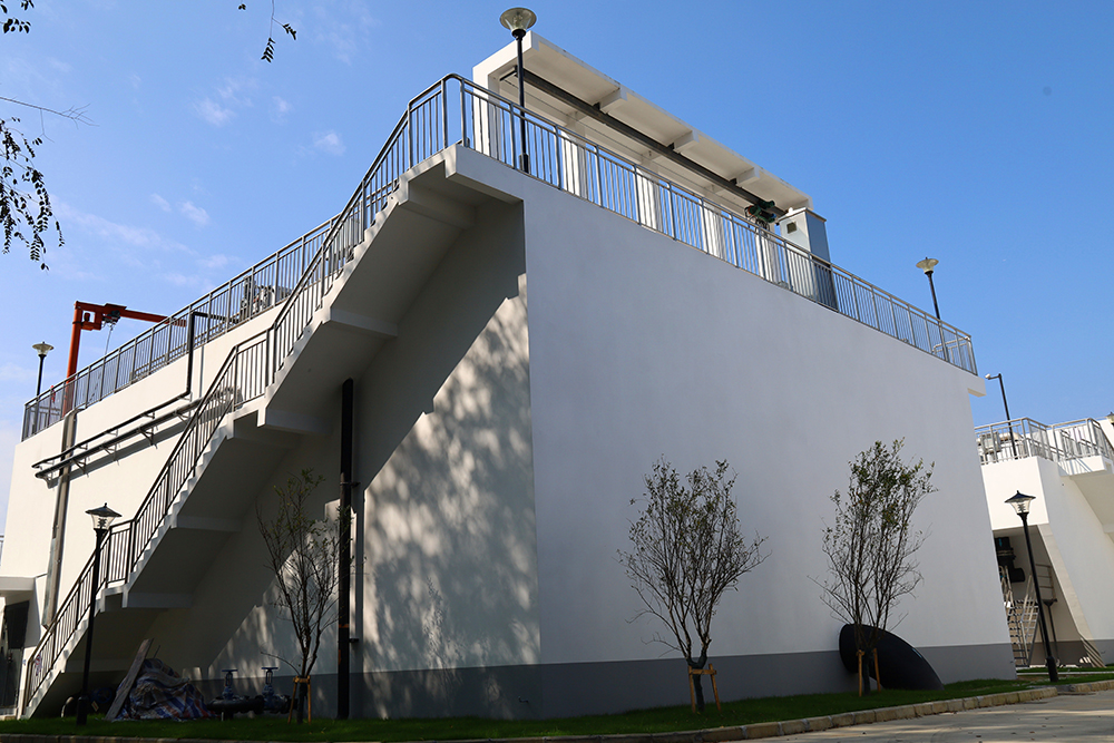 原廠區(qū)地下管線復(fù)雜,大部分管線圖紙缺失,為確保新建過(guò)程中原有生產(chǎn)線正常運(yùn)行,項(xiàng)目施工仔細(xì)探挖管道,根據(jù)管道材質(zhì)與位置判斷用途,重新梳理舊有管道系統(tǒng);舊池地上部分高度超過(guò)15m,且距周邊生產(chǎn)建筑物較近,項(xiàng)目部精細(xì)化施工,精確控制拆除物的大小和掉落方向,提前做好安全防護(hù)措施,快速安全地完成結(jié)構(gòu)拆除;兩組新建生化組合池上部結(jié)構(gòu)建筑模板工程施工,高度超過(guò)8m、結(jié)構(gòu)跨度大,屬于高大支模架工程,為確保模板結(jié)構(gòu)的穩(wěn)定,底部采用對(duì)拉鏍桿加密;為杜絕池壁預(yù)留施工縫滲水問(wèn)題,池壁和池面混凝土一次澆筑成型,施工人員披星戴月、櫛風(fēng)沐雨、緊盯現(xiàn)場(chǎng),確保每個(gè)環(huán)節(jié)、工序達(dá)到高標(biāo)準(zhǔn)。