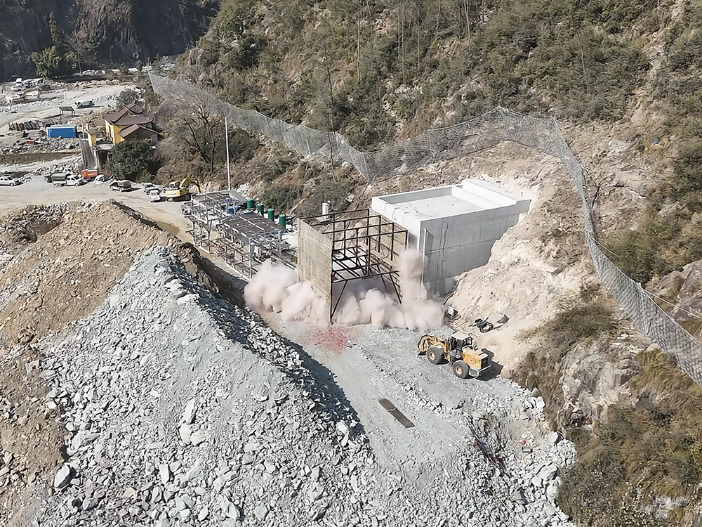 由于交通洞臨近居民區,最近距離僅116米,為籌劃好此次爆破作業,浙江青田抽水蓄能有限公司與電站項目EPC總包部高度重視,先后召開專題會2次,科學謀劃,精心布局,積極與屬地政府、公安等部門對接溝通3次,與其他參建單位緊密配合,采取了多項措施:一是邀請高水平專家對專項開挖方案進行嚴格審查,確保設計的實操性與有效性;二是對爆破區域進行詳細勘察和測量,確保方案科學嚴謹;三是加強溝通,與當地政府聯合進行了房屋評估工作,對交通洞對面的房屋進行了現場勘查、測量、拍照留證,形成書面評估報告,為出現的特殊情況做好準備;四是對施工人員開展技術理論和安全應急處理培訓,全面提升操作安全性;五是與當地政府及居民保持密切溝通,實施嚴格警戒,張貼警示圖與警示牌,引導群眾撤離至安全區域。在確保安全前提下,力爭將對周邊影響最小化,有效兼顧了附近居民安全和項目進度需求。