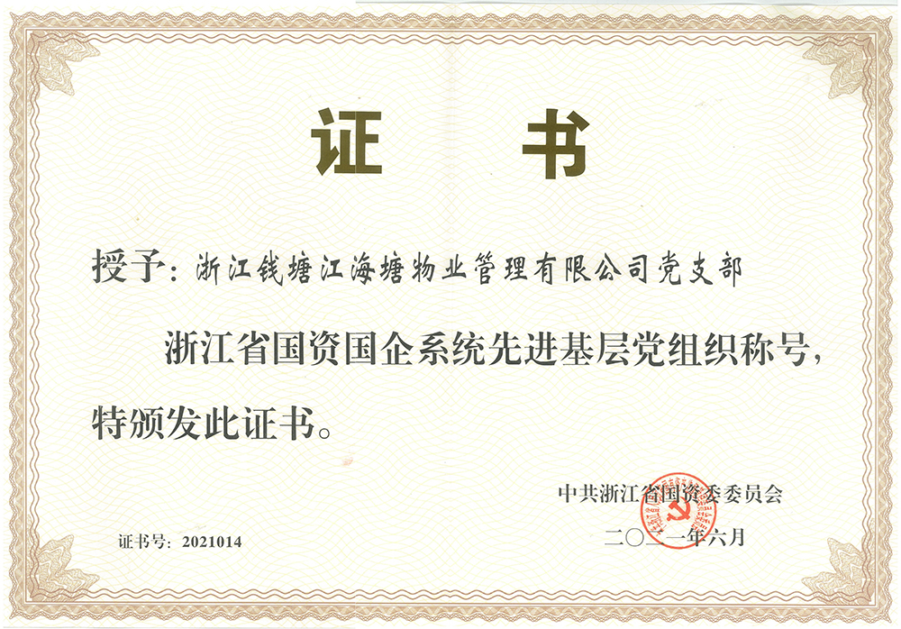 浙江省國資國企系統先進基層黨組織稱號-省國資委(2021.6)