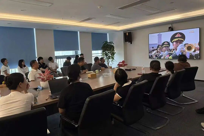 員工們聚集到公司會(huì)議室,等待閱兵開始。看到威武的閱兵方陣、先進(jìn)的武器裝備、受閱官兵鏗鏘的步伐,員工們?yōu)橹疅嵫序v,激動(dòng)之情溢于言表。不僅充分感受偉大抗戰(zhàn)精神,更激發(fā)了愛國熱情和工作動(dòng)力。員工們紛紛表示,將以更飽滿的熱情、更嚴(yán)謹(jǐn)?shù)膽B(tài)度投入崗位,為公司的發(fā)展和國家的繁榮注入紅色動(dòng)能。